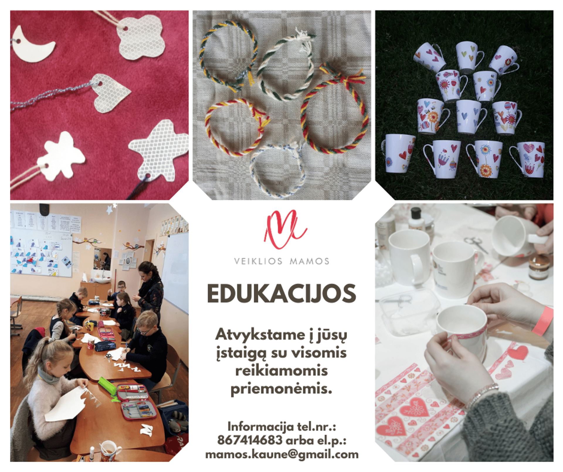 Esame Veiklios Mamos, įkūrusios VšĮ "Veiklų erdvė", kuriančios, puoselėjančios prasmingą, įdomų ir smagų vaikų bei šeimų laiką. Vedame edukacijas, kūrybines dirbtuves, dienos stovyklas bei kviečiame prasmingai praleisti laiką namuose įsigijus mūsų kūrybinius rinkinius.