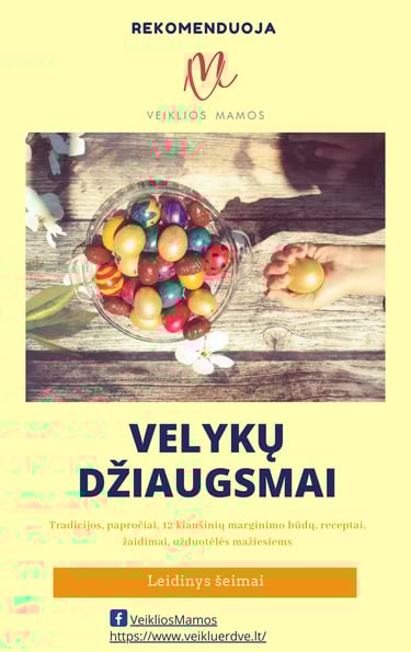 Iki vienos gražiausių pavasario švenčių - Šventų Velykų LIKO tiek nedaug dienų. Linkėdamos, kad laukimas ir pasiruošimas šventei būtų kuo sklandesnis ir įdomesnis, o pačios Šv. Velykos būtų kupinos harmonijos, sveikatos, meilės ir prasmingo laiko šeimoje, dalinamės mūsų sudarytu leidiniu "Velykų džiaugsmai“ + DOVANA UŽDUOTĖLĖS VELYKŲ TEMATIKA (leidinys ir užduotėlės PDF formatu).